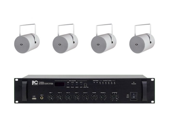 ITC – 4x T-770 + T-60 – Nagłośnienie naścienne do 60 m2