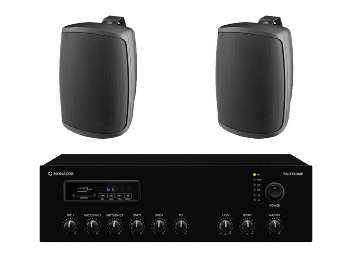 Zestaw przeznaczony jest do nagłośnienia powierzchni nie przekraczającej 100 m². W skład zestawu wchodzi: 6 głośników naściennych MONACOR EUL-26, oraz wzmacniacz MONACOR PA-806DMP. Wzmacniacz posiada wbudowany odtwarzacz MP3 z tunerem radiowym AM/FM.