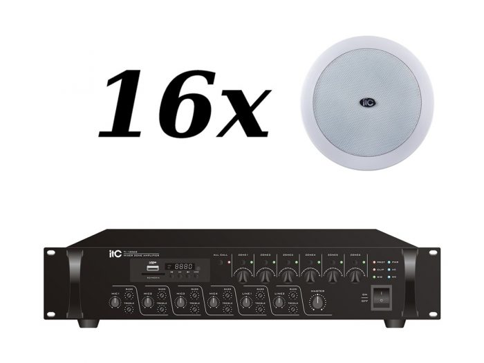 ITC – 16x T-205B + TI-1206S – Nagłośnienie sufitowe do 300 m2