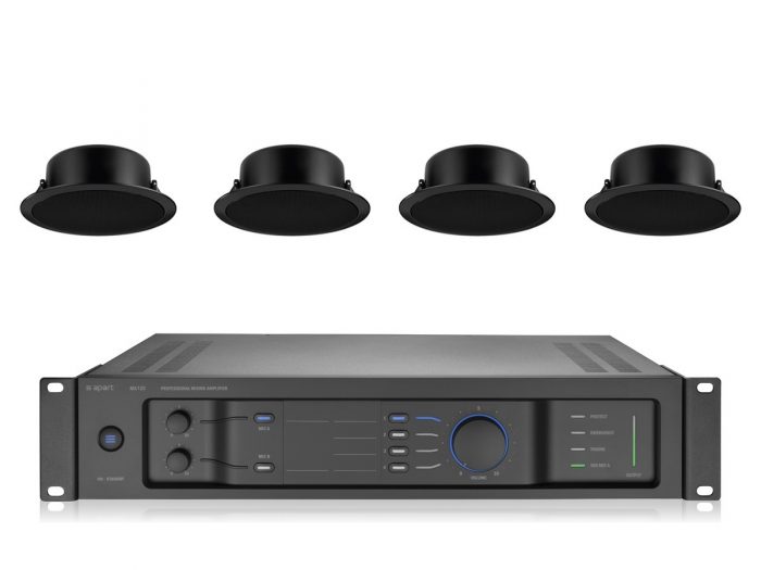4x MONACOR EDL-11TW + APART MA120 – nagłośnienie sufitowe do 60m2