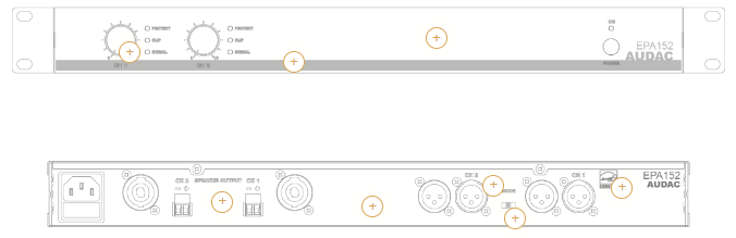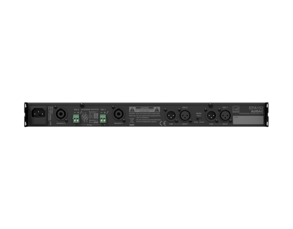 AUDAC EPA152 posiada symetryczne wejścia XLR oraz złącza wyjściowe w postaci skręcanych złączy zgodnych ze specyfikacją SpeakOn, co zapewnia maksymalną kompatybilność z innymi komponentami nagłośnienia. Zintegrowany przełącznik trybu pracy zwrotnicy daje możliwość dostosowania działania do potrzeb konkretnego systemu audio.