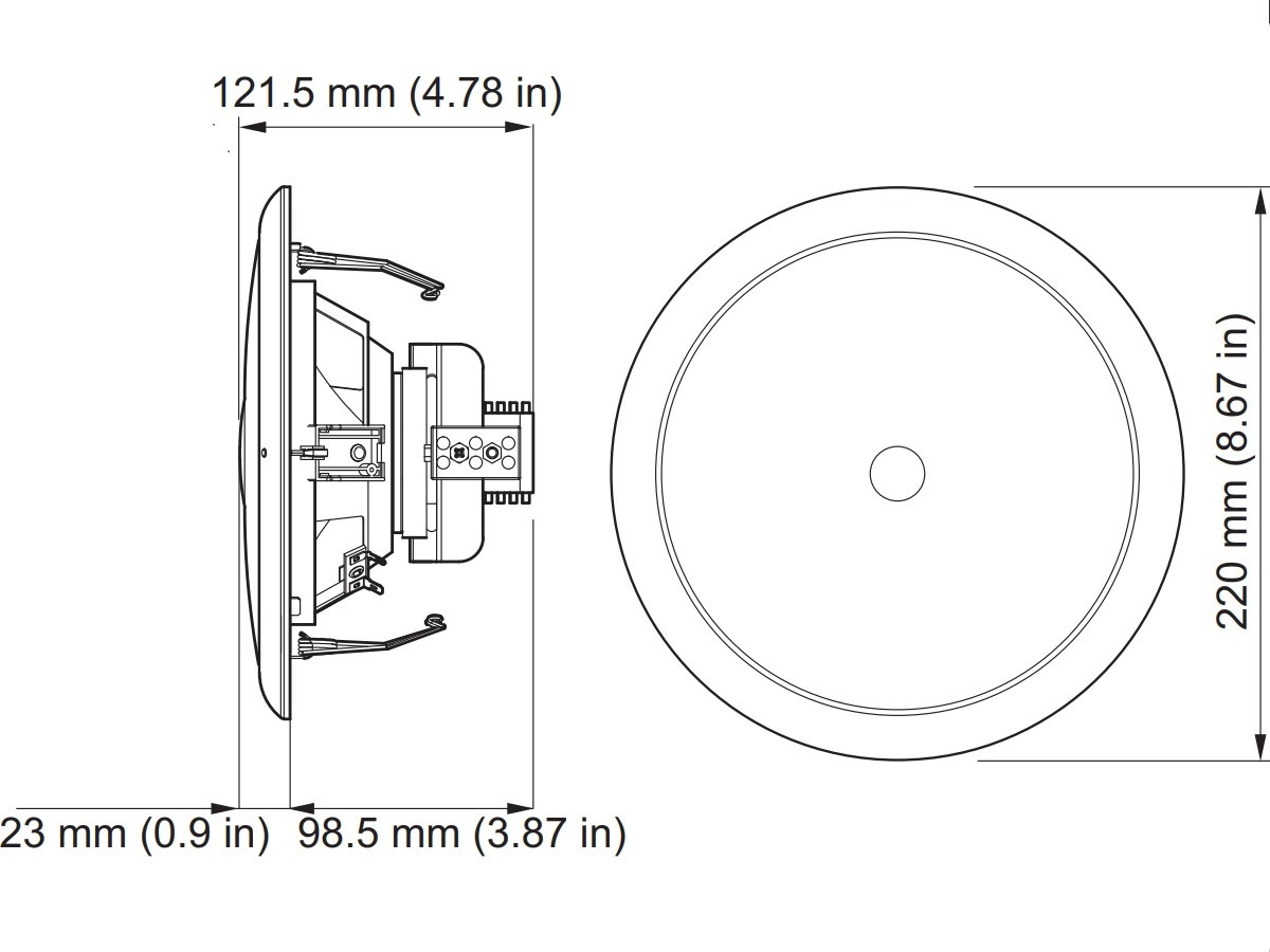 Ze względu na modułową konstrukcję systemu ważne jest nie tylko zamówienie głośnika sufitowego LC1‑xMxxE, ale również wybranych akcesoriów do montażu wpustowego na suficie (jak opisano poniżej). Głośniki mogą zostać zamontowane wpustowo w suficie za pomocą metalowego wspornika montażowego w kształcie litery „U” LC1‑MMSB lub sufitowego pierścienia montażowego z tworzywa ABS LC1‑CMR z opcjonalną osłona tylną LC1‑CBB. Wszystkie części zostały osobno zapakowane z zachowaniem kolejności wymaganej podczas instalacji, aby umożliwić pełne wykorzystanie modułowej