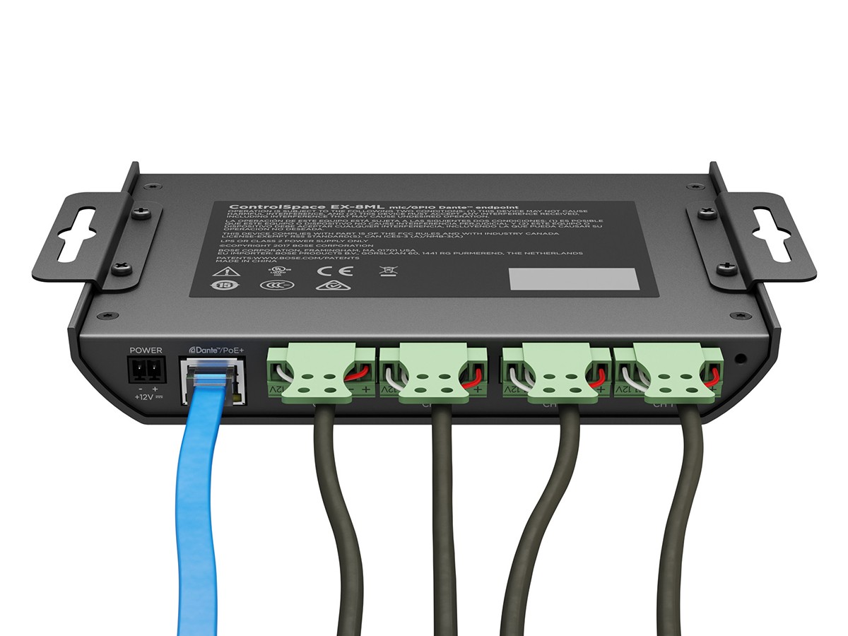 Bose EX-8ML to niezastąpione narzędzie w dużych instalacjach AV, gdzie precyzja, elastyczność i niezawodność są priorytetem. Dzięki integracji z protokołem Dante, urządzenie zapewnia wysokiej jakości transmisję audio, a jego kompaktowa i estetyczna konstrukcja pozwala na łatwą integrację z meblami konferencyjnymi i przestrzeniami użytkowymi. Moduł został stworzony z myślą o stabilnej pracy przez długie lata – bez względu na intensywność użytkowania.