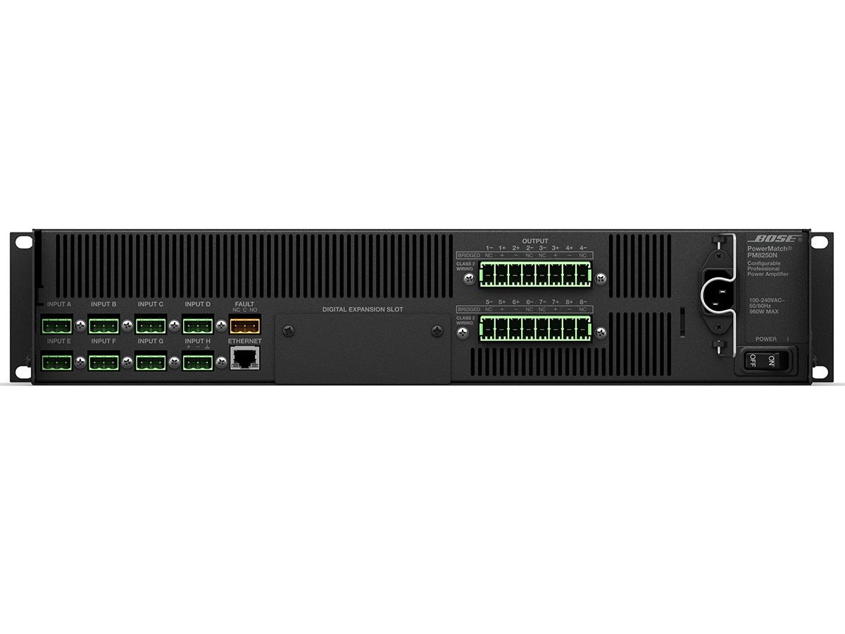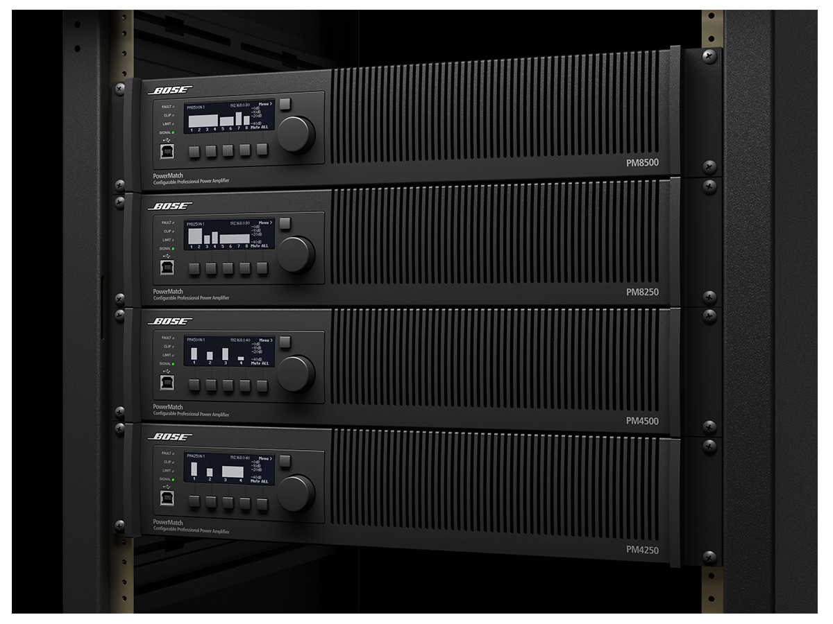 PowerMatch PM8250N został zaprojektowany z myślą o integracji w rozbudowanych systemach audio opartych o sieciowy przesył sygnału. Dzięki kompatybilności z kontrolerami Bose CC-1D, CC-2D, CC-3D i CC-64, a także zastosowaniu 2RU obudowy (88 mm × 483 mm × 525 mm), wzmacniacz można z łatwością zamontować w szafach rackowych, gwarantując jednocześnie bezproblemową obsługę nawet przez mniej doświadczonych operatorów.