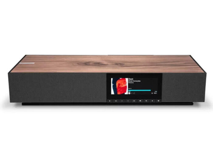 Cambridge Audio Evo One to nie tylko wybitne możliwości dźwiękowe, ale także wyjątkowa estetyka. Projekt autorstwa Geda Martina, nagrodzony Red Dot Award, wyróżnia się minimalistyczną sylwetką z elementami retro i naturalnym wykończeniem. Obudowa wykonana z forniru orzecha włoskiego o certyfikacie FSC, w połączeniu z akustycznie transparentną tkaniną oraz maskownicą inspirowaną strukturą plastra miodu, tworzy harmonijną całość.