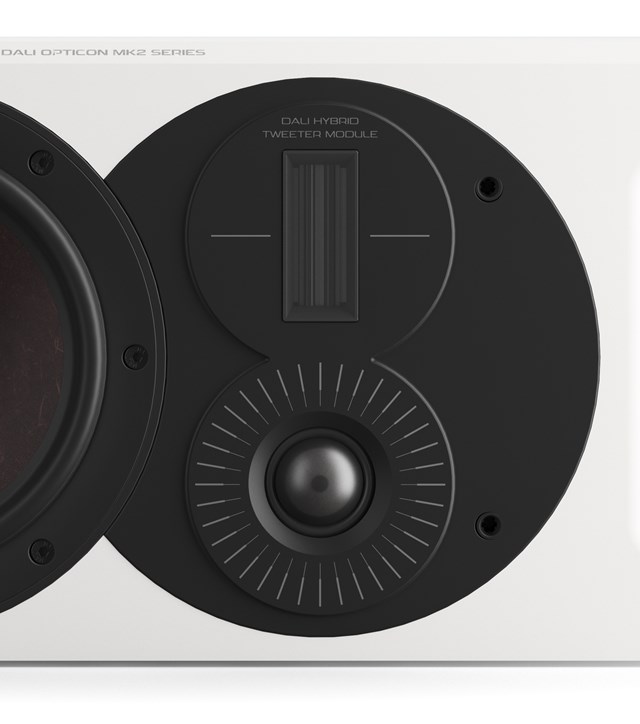 Sercem DALI Opticon Vokal Mk2 jest hybrydowy moduł wysokotonowy, łączący 29-milimetrową miękką kopułkę tekstylną oraz wstęgowy głośnik wysokotonowy o wymiarach 17 x 45 mm. Taki duet pozwala na szeroką i równomierną dyspersję wysokich częstotliwości aż do 30 000 Hz, zapewniając niesamowitą detaliczność oraz naturalność dźwięku.