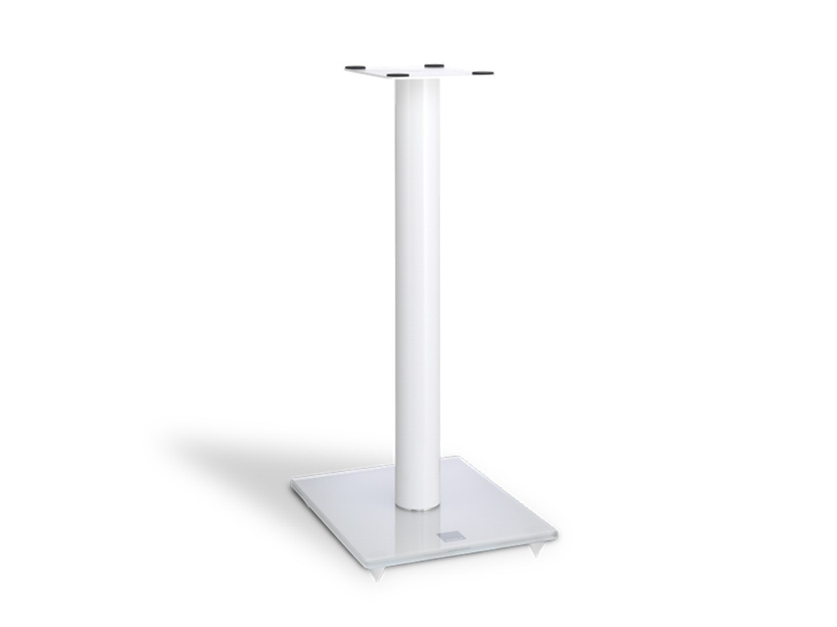 Statyw DALI CONNECT Stand E-600 ma wysokość 602 mm i został osadzony na delikatnej, ale bardzo wytrzymałej płytce szklanej w kolorze matowego jedwabiu. Rurę wykonano z aluminium lakierowanego na wysoki połysk i umożliwia ona zarządzanie okablowaniem, natomiast żelazna płytka górna w kolorze czarnym zawiera miejsca do mocowania, które zapewniają bardzo trwałe mocowania głośnika na statywie.