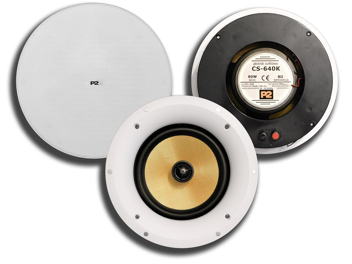 Głośnik sufitowy Dexon CS-640K wyposażono w 6,5-calowy głośnik niskotonowy z kevlarową membraną oraz 1-calowy głośnik wysokotonowy z jedwabną membraną, które zapewniają doskonałe, wyważone brzmienie.
