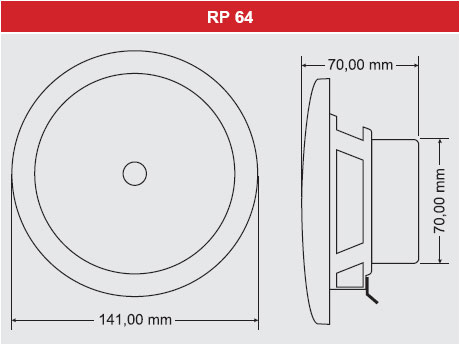 Model RP 64 jest lekki i kompaktowy – waży jedynie 0,55 kg przy wymiarach fi 141 × 70 mm. Do jego instalacji potrzebny jest otwór montażowy o średnicy 105 mm, co pozwala na łatwe wkomponowanie w sufity podwieszane, ściany czy zabudowy meblowe. Dzięki niewielkim gabarytom głośnik można dyskretnie zamontować w każdej przestrzeni, bez ingerencji w estetykę wnętrza. Producent zaleca, aby przy instalacji w saunach umieszczać głośniki jak najniżej – np. pod siedziskiem. Rozwiązanie to chroni sprzęt przed nadmiernym nagrzewaniem i jednocześnie zapewnia lepsze rozchodzenie się dźwięku.