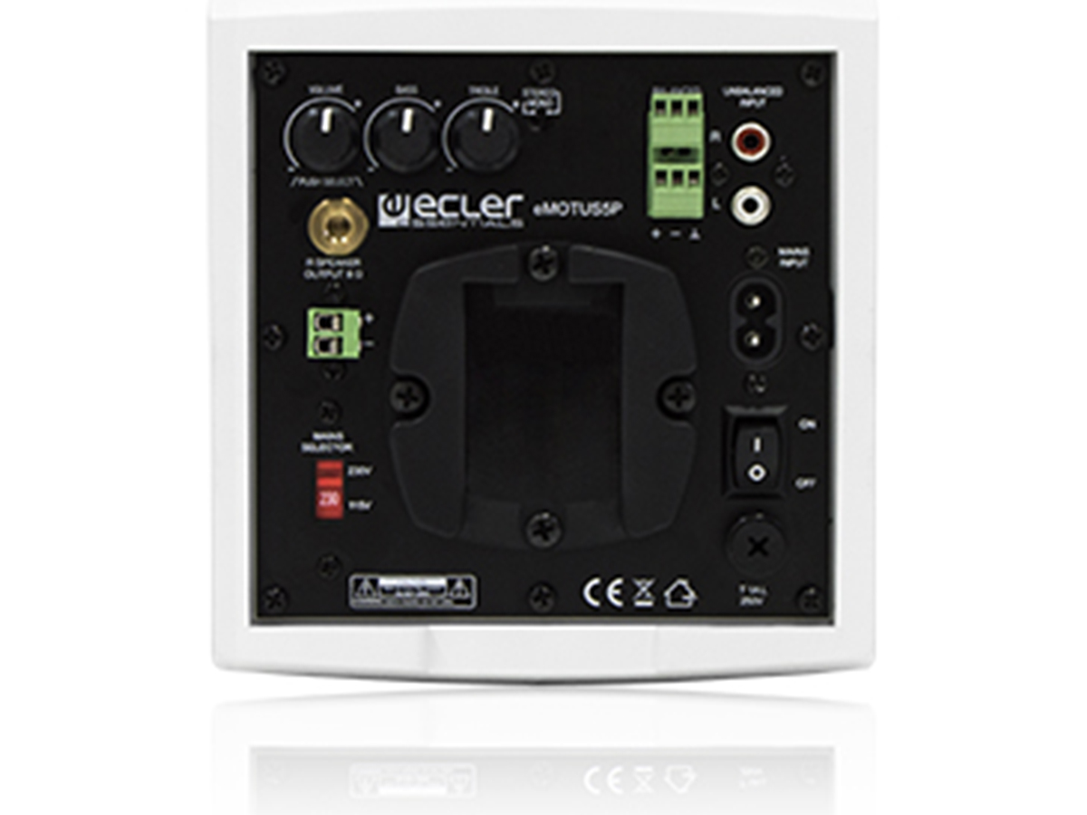 ECLER eMOTUS5P to stereofoniczny zestaw głośnikowy, w skład którego wchodzi jeden głośnik aktywny oraz jeden głośnik pasywny. W eMOTUS5P głośnik aktywny posiada 2 wejścia, jedno liniowe oraz jedno niezbalansowane. Urządzenie dostępne w kolorze białym.