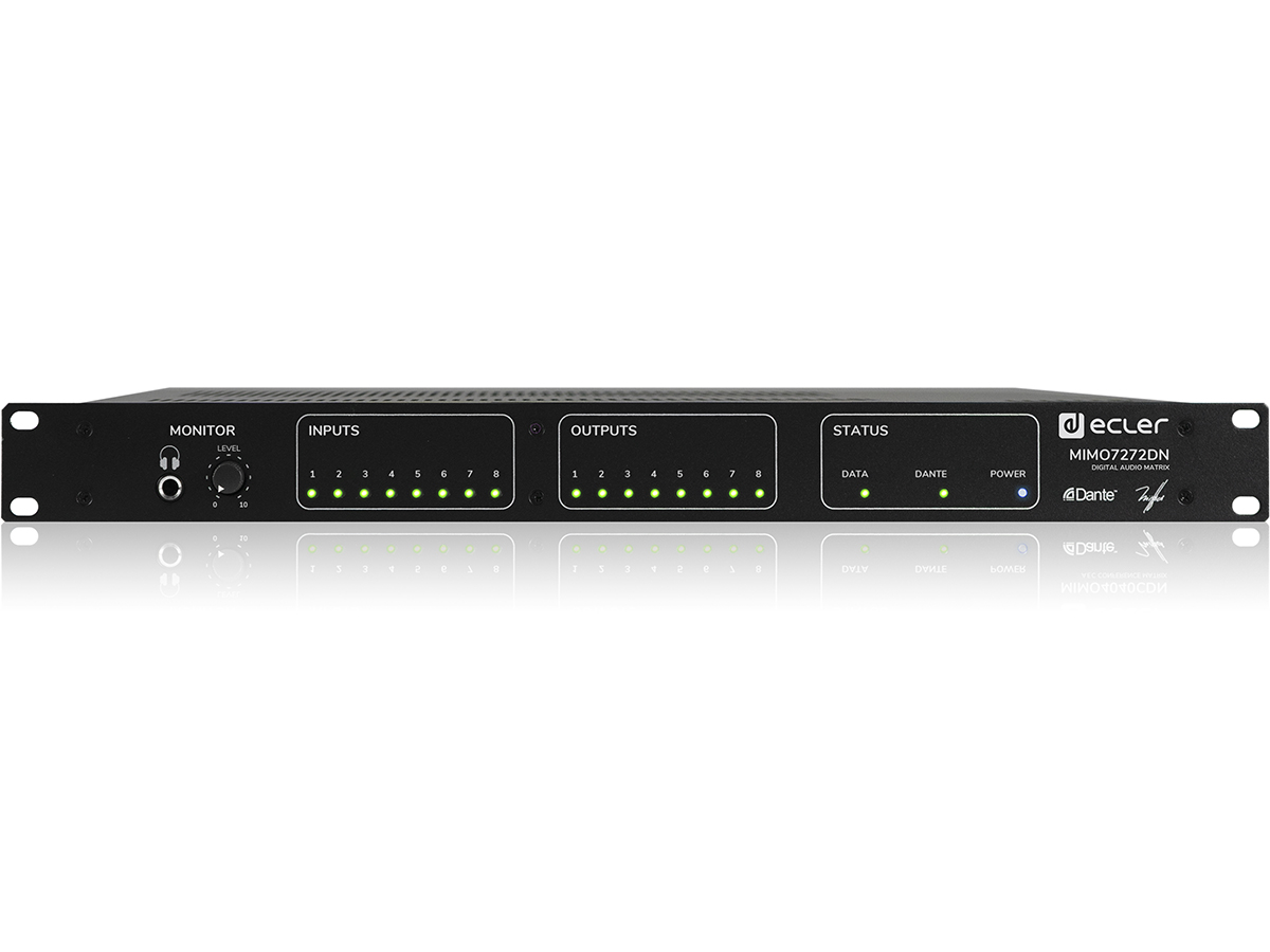 Ecler MIMO7272 to cyfrowa matryca 64×64 posiadająca 72 wejścia i 72 wyjścia (po 8 wejść i wyjść analogowych, 64 wejścia Dante TM i 64 wyjścia Dante TM). MIMO7272 wykorzystuje technologię Audio over IP oraz umożliwia transmisję sygnału za pomocą lokalnej sieci Ethernet. Urządzenie może być łączone z akcesoriami z serii WPNET podłączanymi do tej samej sieci Ethernet. Matryca wykonuje także projekty EclerNet, ponieważ może działać jako serwer UCP.