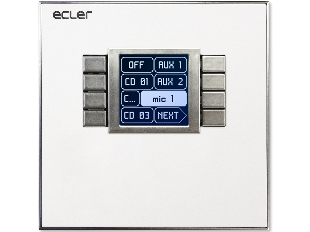 ECLER WPNET8KV to panel ścienny zgodny z EclerNet, wyposażony w ekran LCD, cyfrowy enkoder obrotowy i 8 klawisze bezpośredniego wyboru. Jest to urządzenie kontrolne użytkownika końcowego z funkcją regulacja głośności, funkcją wyboru źródła oraz innych zaprogramowanych ustawień. Wyposażony w interfejs Ethernet i zgodny z PoE (Power over Ethernet) lub lokalnym zasilaczem (opcjonalnie).