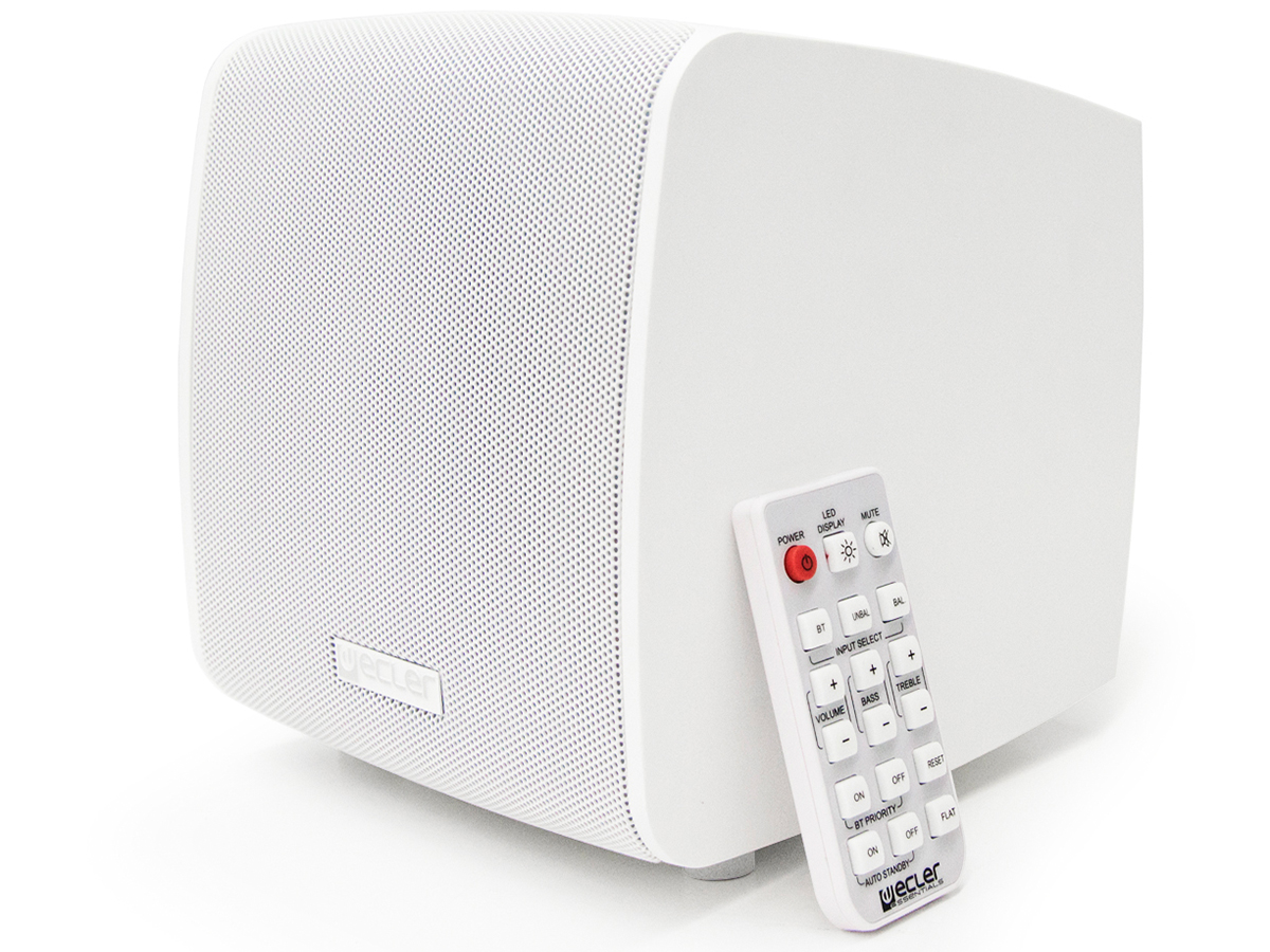 ECLER eMOTUS5PB to stereofoniczny zestaw głośnikowy, w skład którego wchodzi jeden głośnik aktywny oraz jeden głośnik pasywny. W eMOTUS5PB głośnik aktywny posiada 2 wejścia, jedno liniowe oraz jedno niezbalansowane, a także możliwość połączenia za pośrednictwem Bluetooth. Dodatkowo urządzenie posiada pilot podczerwieni oraz wejście dla zdalnego reflektora głośności (0-10VDC).