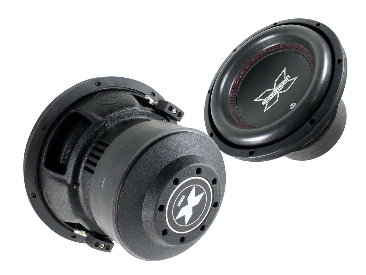 Samochodowy głośnik niskotonowy (subwoofer) o średnicy 10″/25cm i impedancji 2×4 Ohm z serii SXE (Excellence) niemieckiej marki Excursion.
