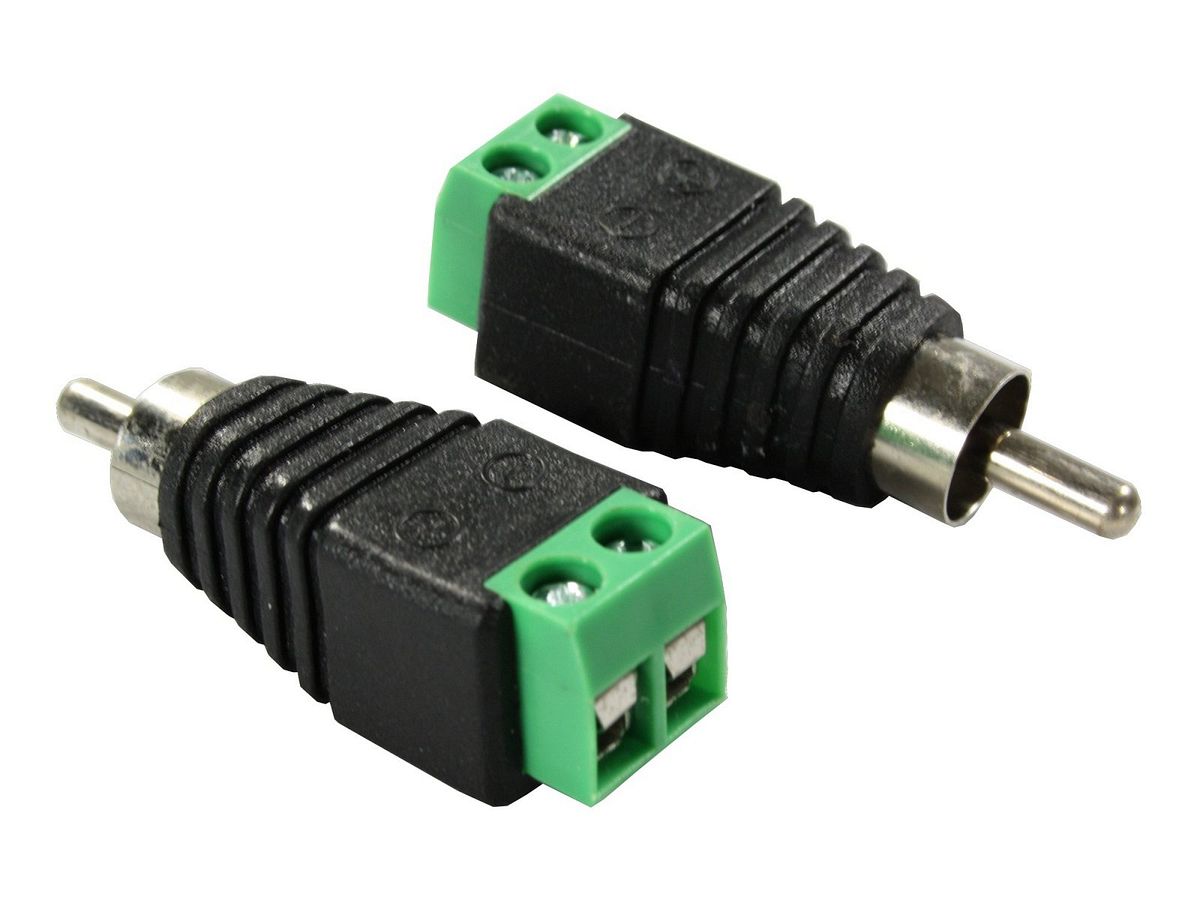 adaptacyjny konektor sygnałowy do systemów OEM – wtyk RCA (typ męski) / złącze przewodów głośnikowych do 2×2.0mm2, cena za 2 szt.