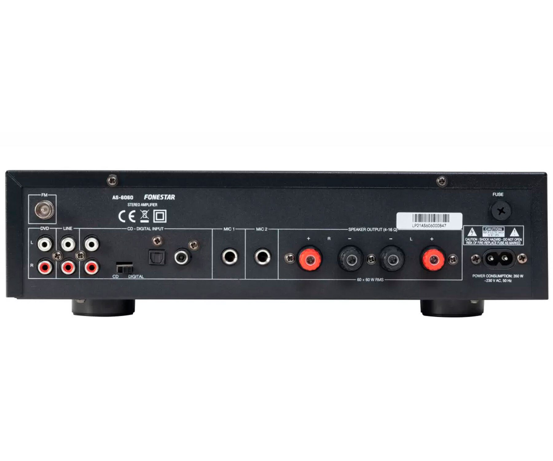 Wzmacniacz stereo Hi-Fi z odtwarzaczem Bluetooth, USB/MP3 i radiem FM Cechy: Nowy wzmacniacz z ekskluzywnym projektem FONESTAR, wysoce niezawodna i dokładna reprodukcja. Wyjątkowe wykończenie z frontem ze szczotkowanego aluminium oraz kontrastowym i widocznym wyświetlaczem LCD. Elegancki i praktyczny design, można go wkomponować w dowolne ustawienie, zarówno do użytku domowego, jak i profesjonalnego. Wiele opcji odtwarzania (Bluetooth, USB/MP3 i FM) oraz wejścia audio sprawiają, że jest bardzo wszechstronny i można go dostosować. Dwa wejścia mikrofonowe pozwalają na używanie go jako odtwarzacza karaoke i śpiewanie ulubionych piosenek. Potężny dźwięk bez zniekształceń, który zapewnia spójne odtwarzanie Twojej muzyki. Intuicyjne użytkowanie. Zastosowania: Wzmacniacz Hi-Fi do użytku domowego lub profesjonalnego: dom, bary, puby, restauracje, sklepy, szkoły itp. Dane techniczne: 60 W + 60 W RMS