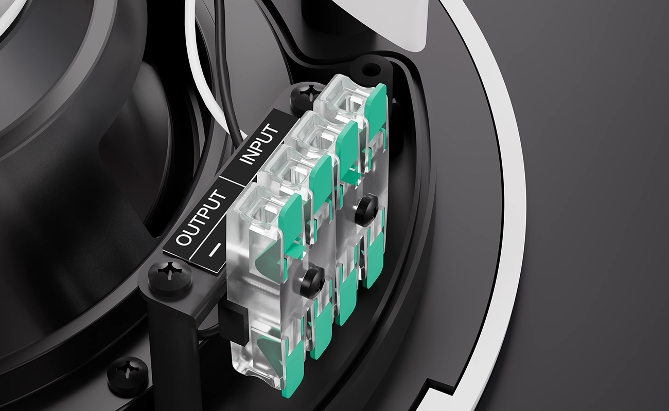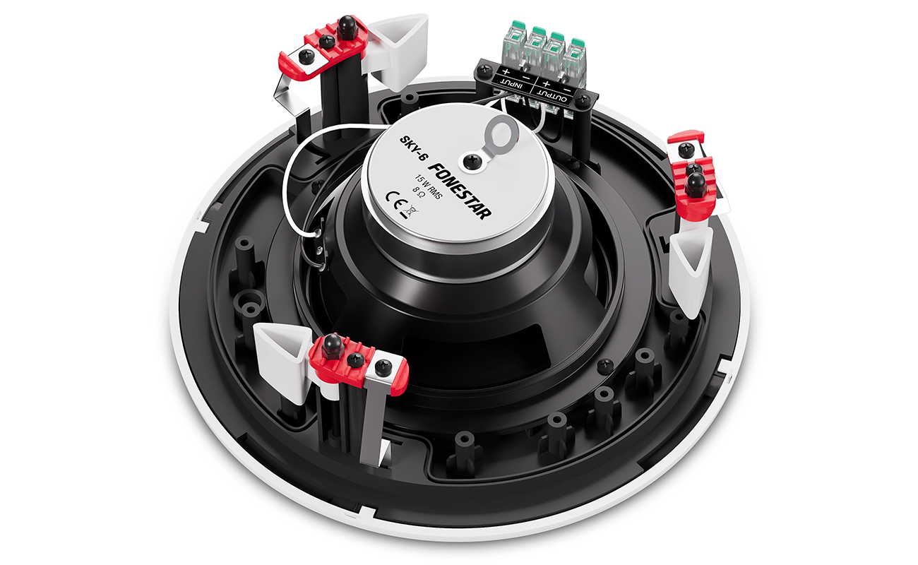 Model SKY-6 został stworzony z myślą o trwałości i wygodzie montażu. Obudowa z odpornego na promieniowanie UV tworzywa ABS i aluminiowa kratka lakierowana cieczą zapewniają odporność na kurz i wodę zgodnie z normą IP-44. Dodatkowym potwierdzeniem wytrzymałości jest pozytywny wynik testu neutralnej mgły solnej (EN ISO 9227:2006), co czyni głośnik odpowiednim również do trudnych warunków środowiskowych. Montaż przebiega szybko i bezproblemowo dzięki zaciskom szybkiego podłączenia oraz stabilnym uchwytom ślimakowym. Praktyczny system antyupadkowy i uchwyt na linkę zabezpieczającą zwiększają bezpieczeństwo instalacji, a możliwość demontażu i personalizacji kratki (w tym usunięcie logo i malowanie) daje swobodę dopasowania do wystroju wnętrza.