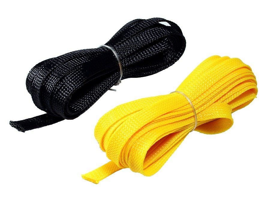 Wysokiej jakości oplot ochronny na kable i wiązki przewodów (plecionka) w estetycznym opakowaniu detalicznym (blister). Zestaw zawiera 12 metrów oplotu: 6m czarnego i 6m żółtego.