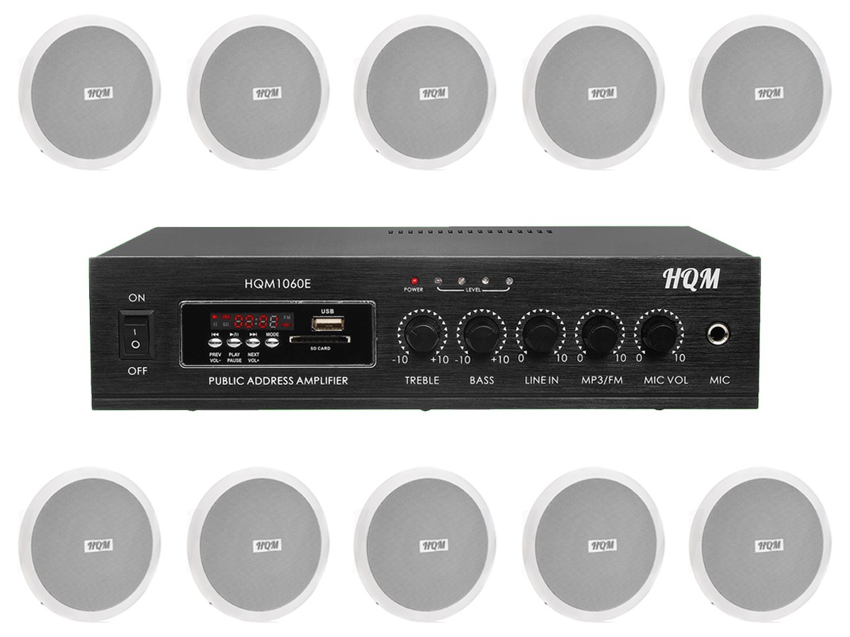 Zestaw przeznaczony jest do nagłośnienia powierzchni nie przekraczającej 200 m². W skład zestawu wchodzą: 10 jednodrożnych głośników sufitowych HQM SO615 oraz wzmacniacz HQM 1060E. Wzmacniacz posiada wbudowany odtwarzacz MP3 z tunerem radiowym AM/FM.