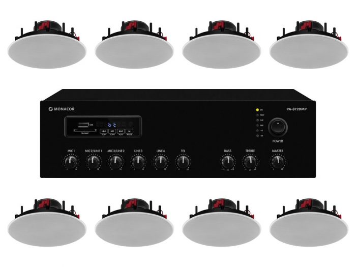 8x ITC T-208A + MONACOR PA-812DMP – Nagłośnienie sufitowe do 150 m2