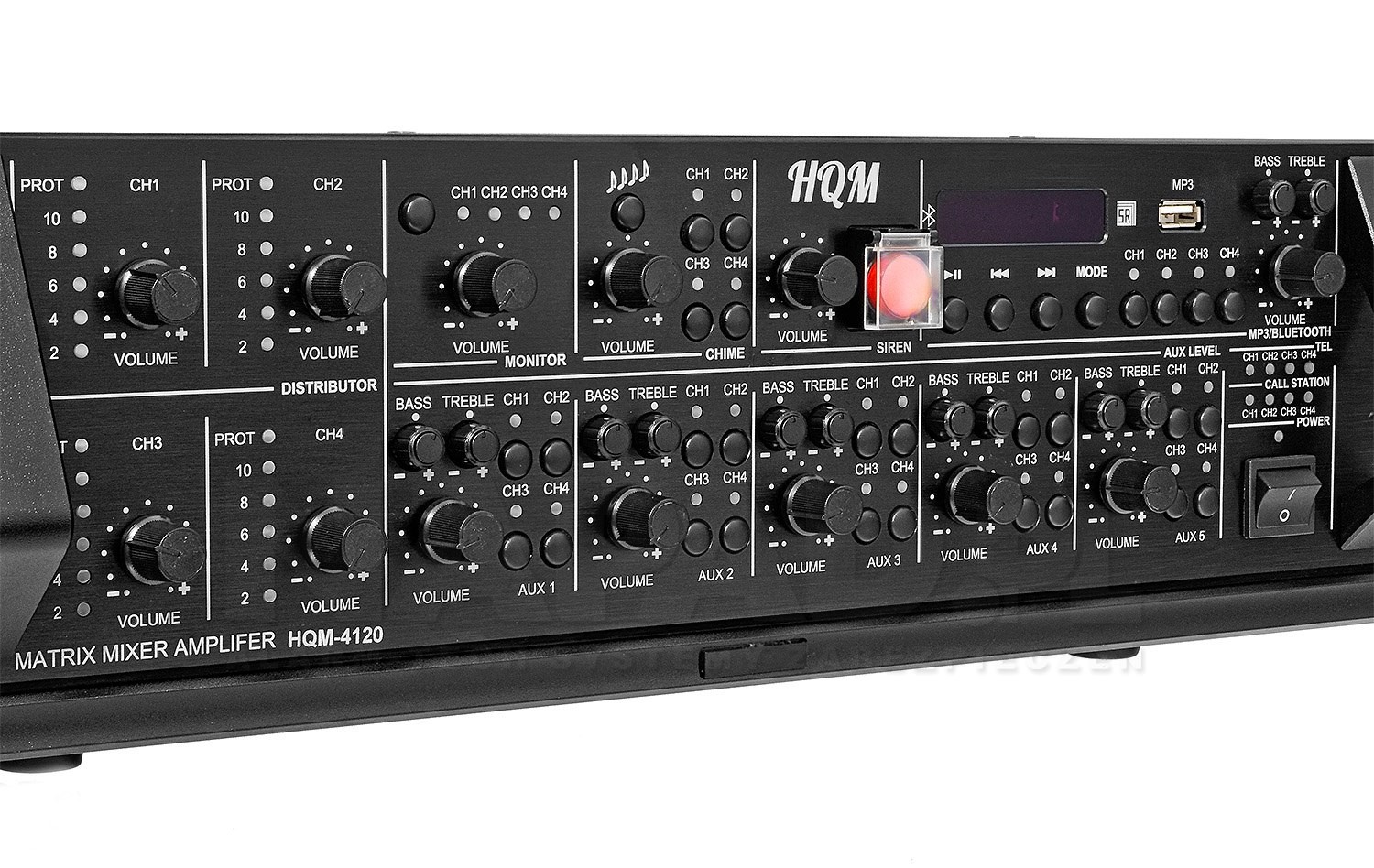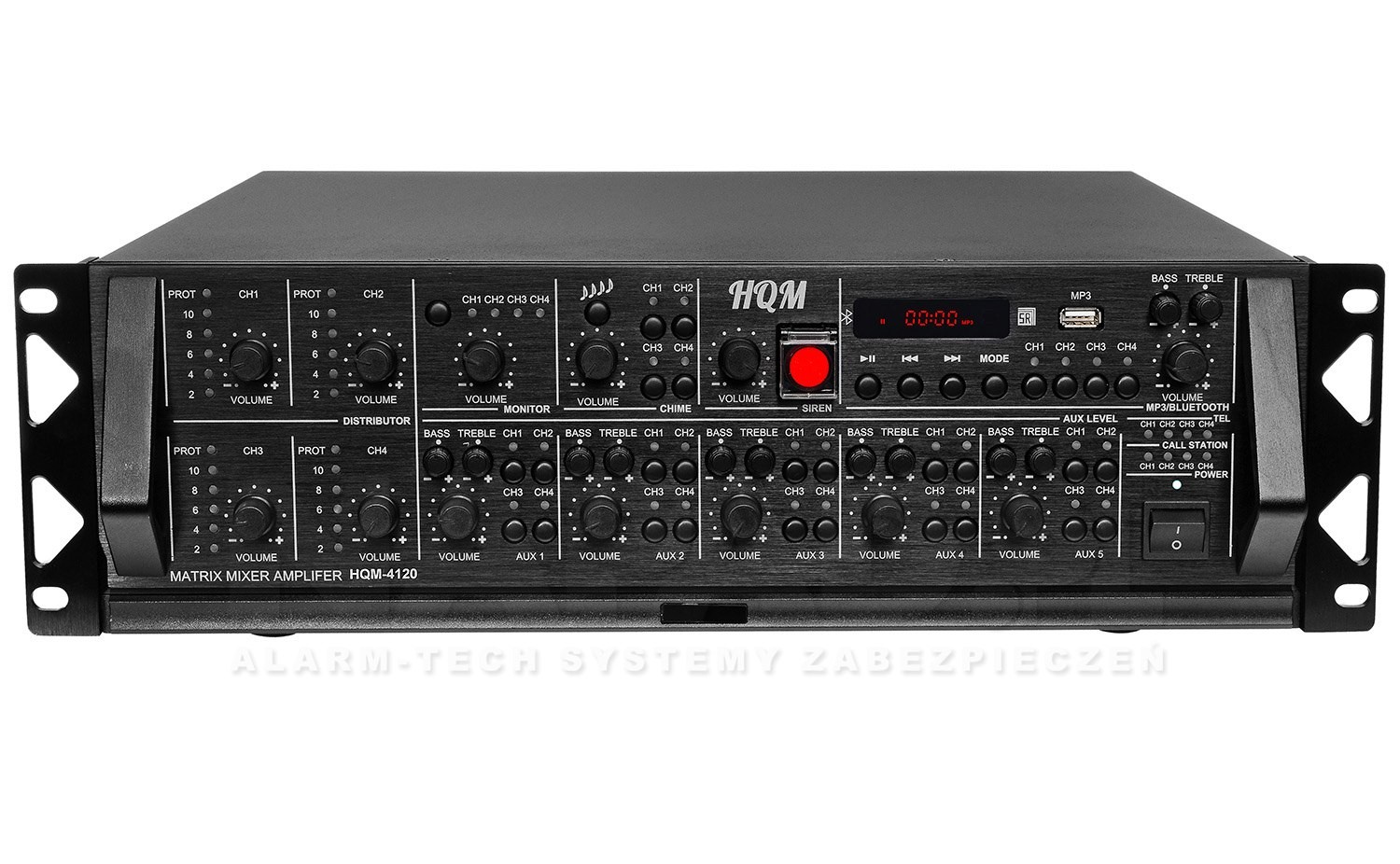 - Regulacja głośności : MASTER/AUX/MIC/SYRENA/GONG/BLUETOOTH/TEL