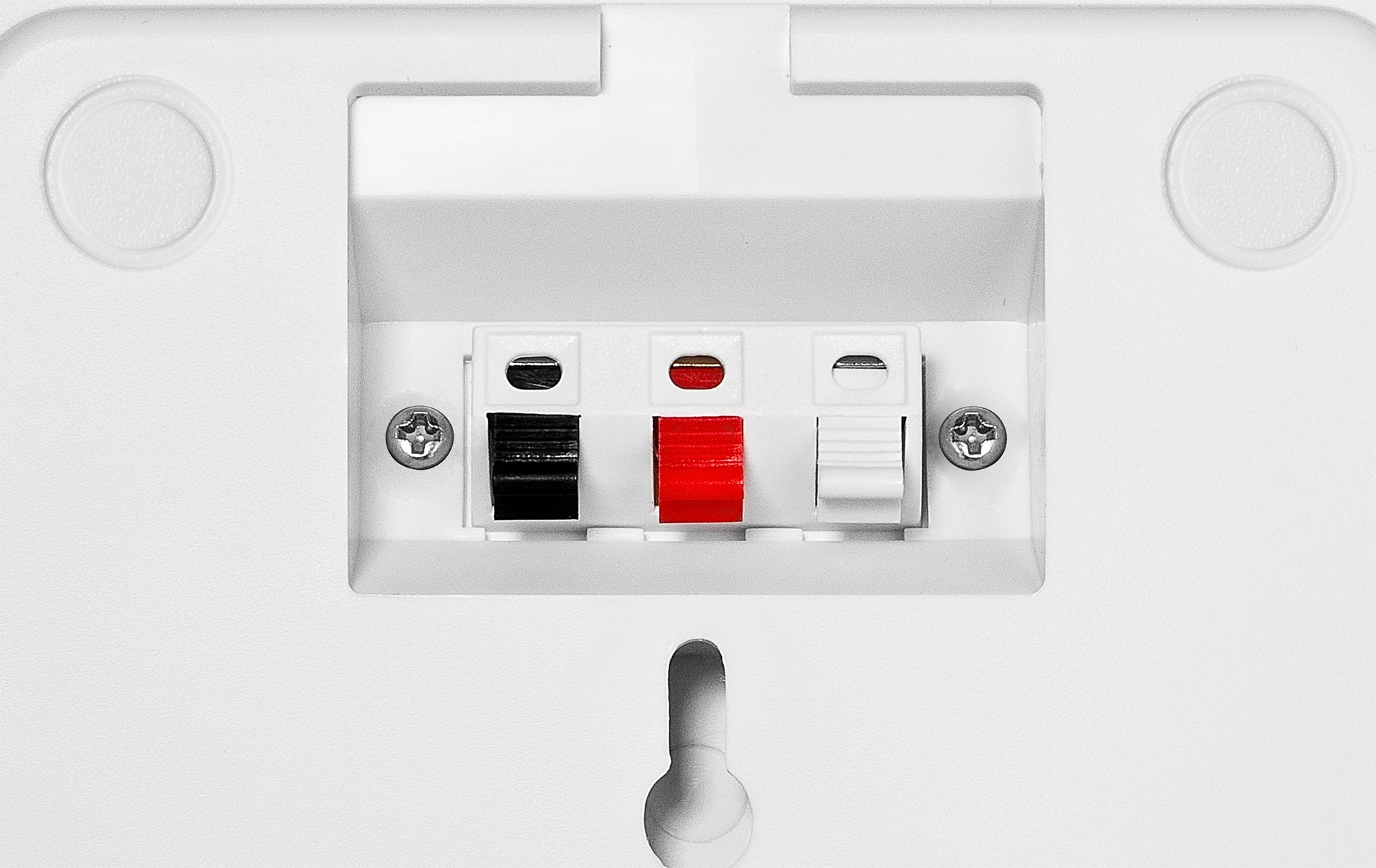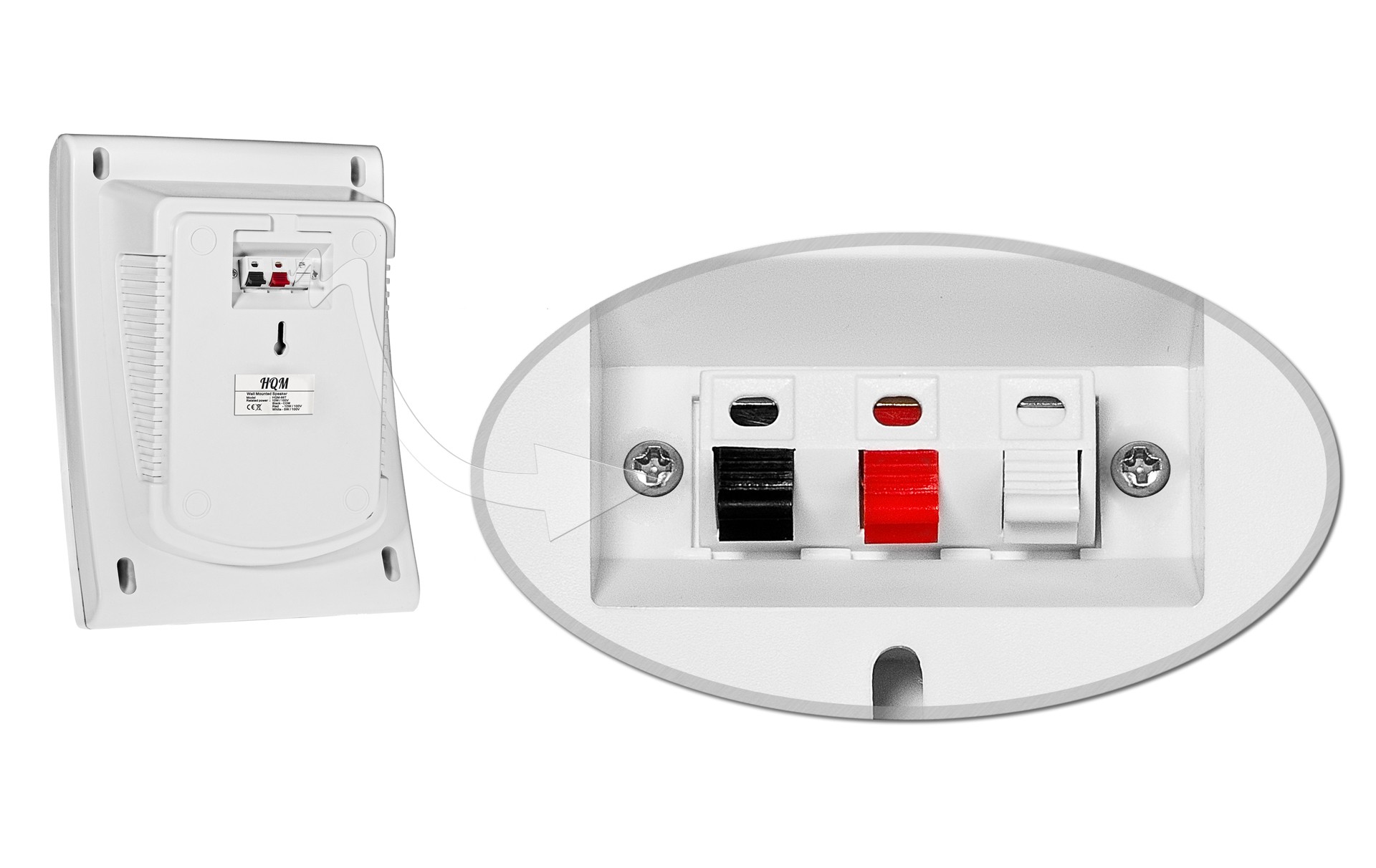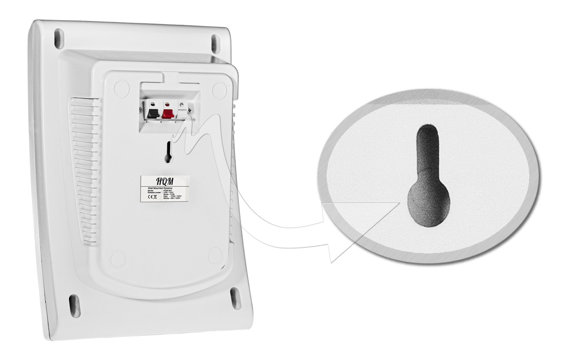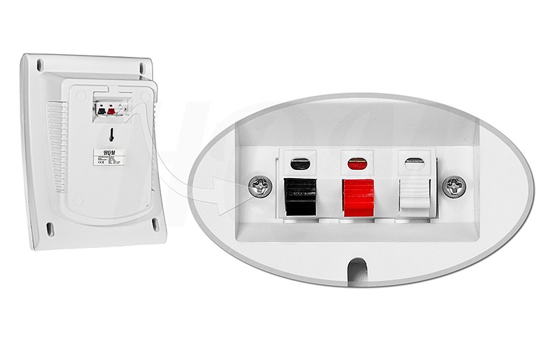 Celem głośnika HQM N10165 jest dostarczenie dźwięku najwyższej jakości. Odznacza się bezproblemowym i szybkim montażem na powierzchniach ściennych. Instalacja polega na zawieszeniu urządzenia dzięki otworowi znajdującemu się na tylnym panelu głośnika.