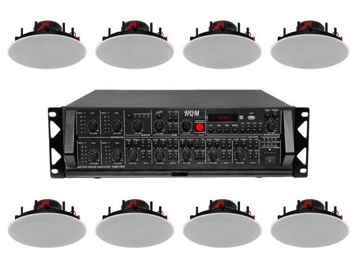 8x MONACOR EDL-82HQ + HQM 4060 – nagłośnienie sufitowe do 150m2