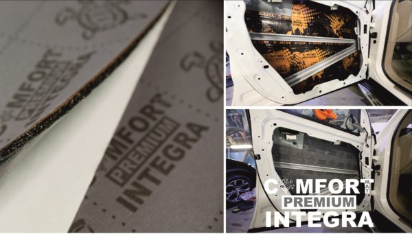 INTEGRA to najlżejsza izolacja membranowa dostępna we wszystkich firmach, która została wypuszczona przez Comfort Mat w sezonie 2018 – 2019, wykonana na najnowszym kleju montażowym i uszczelniaczu. Część robocza materiału izolującego hałas składa się z warstwy 4 mm, pokrytej gęstą membraną dźwiękoszczelną o grubości około 1,5 mm. Dostajemy nie tylko wygodę i łatwość instalacji, bezwzględną odporność na wilgoć, wysoką elastyczność i przyczepność do powierzchni pionowych, ale także najważniejszą rzeczą jaką jest łatwość montażu – niespotykana dotąd wśród podobnych materiałów, która po raz pierwszy daje nam możliwość zastosowania materiałów membranowych w drzwiach samochodów. Do tego momentu żadna firma produkująca materiały do izolacji akustycznej nie zapewniła nam takich możliwości materiałami membranowymi.