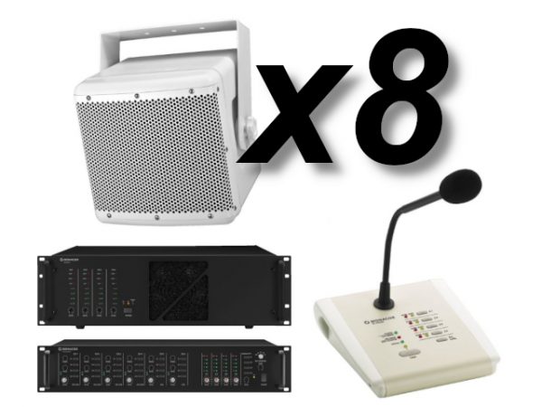 Monacor PAB-82WP x8 + PA-6040MPX + PA-4240 + PA-4000RC – Nagłośnienie Stadionu/Orlika