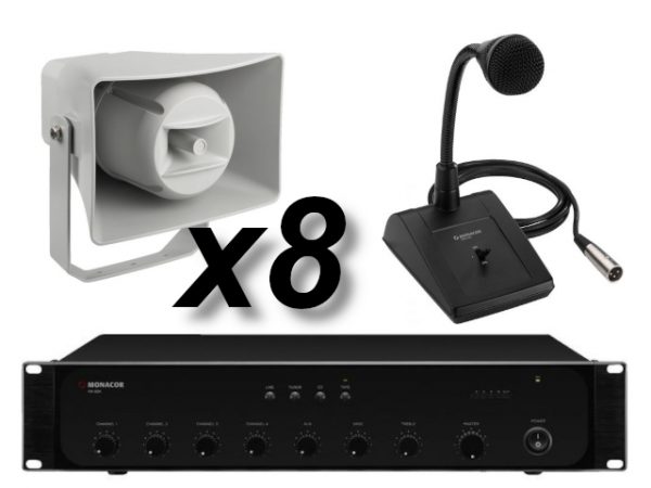 Monacor PAB-6WP/WS x6 + PA-948S + MPX-52PA + PA-5000PTT – Nagłośnienie Stadionu/Orlika