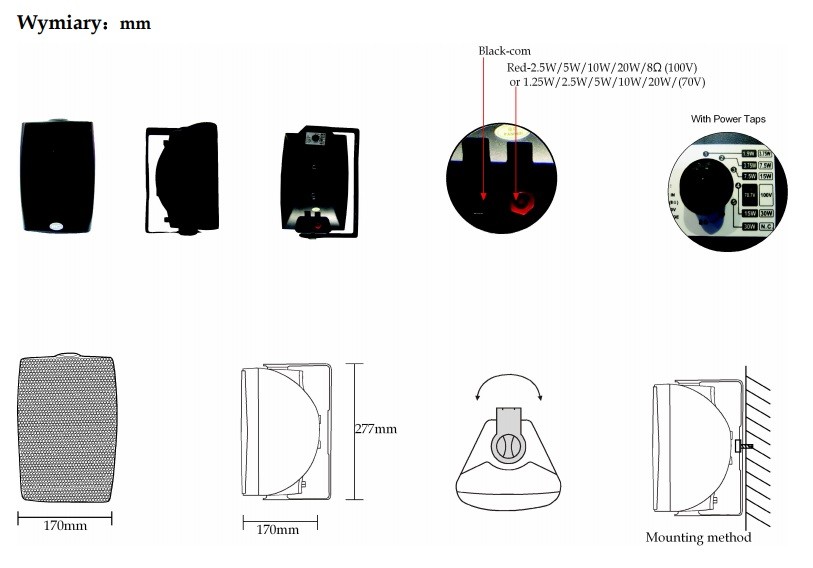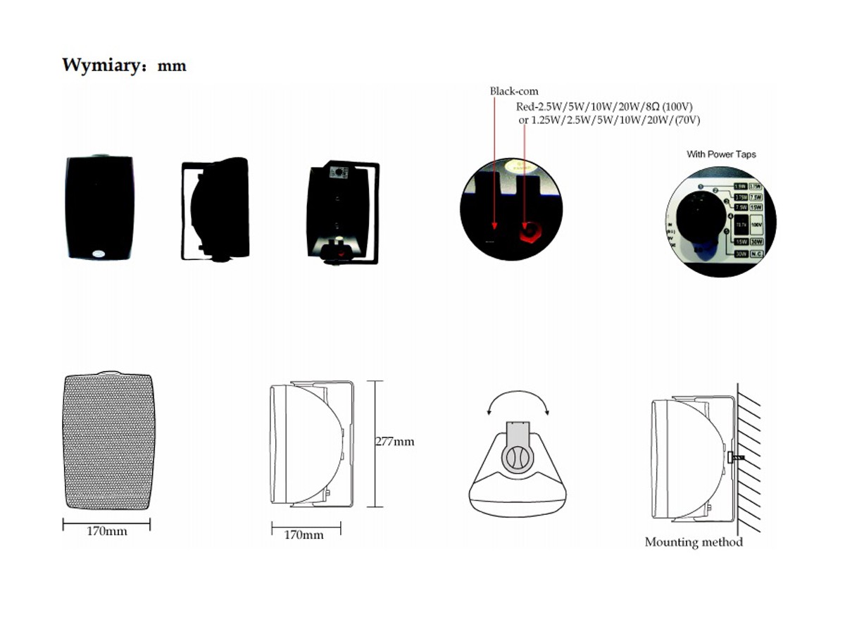 ITC Audio – T-774H został wyposażony w transformator wieloodczepowy, który pozwala na wybór poziomu mocy: 2,5W, 5W, 10W, 20W oraz możliwość pracy w trybie 8Ω. To sprawia, że użytkownik ma pełną kontrolę nad natężeniem dźwięku w zależności od potrzeb danego pomieszczenia. Dodatkowym atutem jest regulator głośności z wygodnym dostępem do zmiany ustawień, co pozwala użytkownikowi dostosować emisję dźwięku bez konieczności ingerencji w sam system nagłośnieniowy. W zestawie znajduje się również uchwyt ścienny z możliwością regulacji kierunku dźwięku, co zapewnia optymalne rozprowadzenie dźwięku w wybranej przestrzeni.