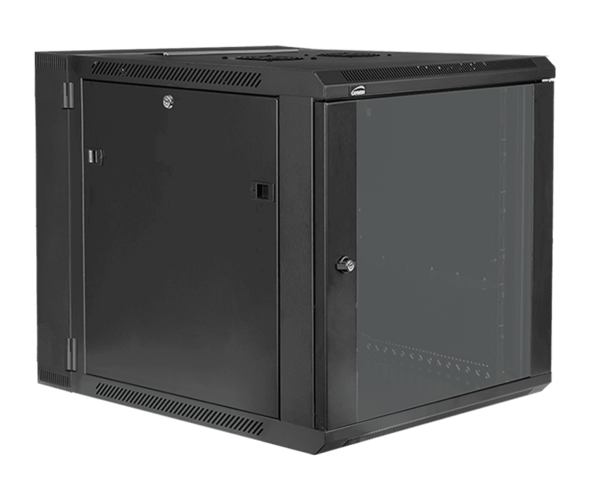 Naścienna szafa rack 19 12U o dwuczęściowej konstrukcji, głębokość 550 mm, czarna