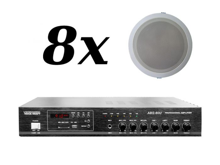 Zestaw przeznaczony jest do nagłośnienia powierzchni nie przekraczającej 150 m². W skład zestawu wchodzi: 8 głośników sufitowych POLTON CSL-810T oraz wzmacniacz VOICE KRAFT ABS-80U