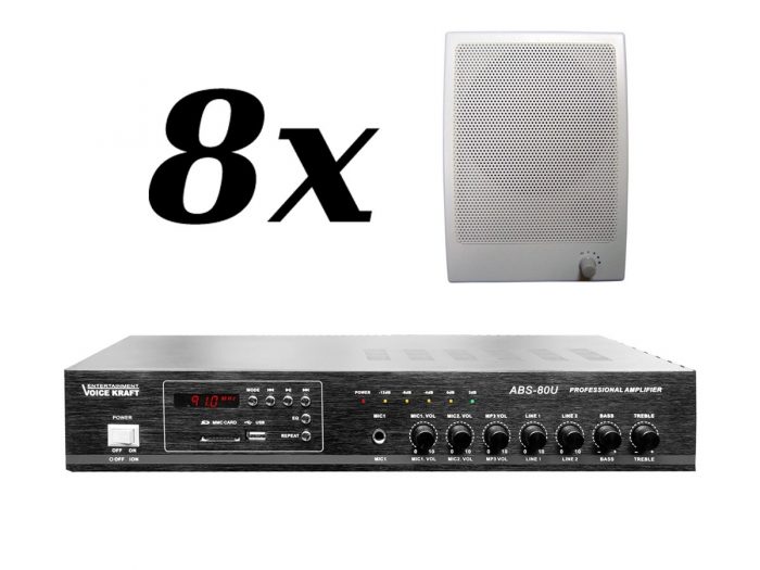 Zestaw przeznaczony jest do nagłośnienia powierzchni nie przekraczającej 150 m². W skład zestawu wchodzi: 8 głośników naściennych POLTON KR10-TR oraz wzmacniacz VOICE KRAFT ABS-80U
