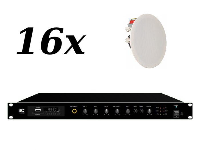 Zestaw przeznaczony jest do nagłośnienia powierzchni nie przekraczającej 300 m². W skład zestawu wchodzi: 16 głośników sufitowych AMC PCR 8T oraz wzmacniacz ITC T-1240TBV
