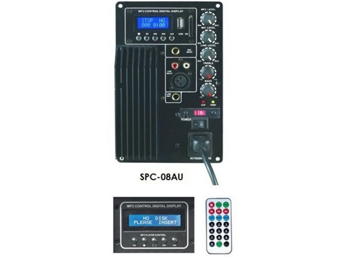 - wbudowany moduł odtwarzacza MP3 (gniazdo USB i SD Card) + pilot zdalnego sterowania