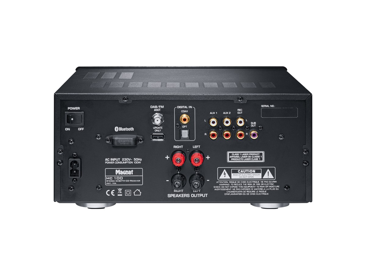 Po stronie tunera, MC100 jest wyposażony zarówno w analogowy tuner FM, jak i cyfrowy odbiornik DAB+, dzięki czemu jest absolutnie przyszłościowy. Dotyczy to również obecnego standardowego interfejsu Bluetooth 4.0 oraz Qualcomm® aptX™, które gwarantują najlepszą możliwą jakość odtwarzania za pośrednictwem smartfona, tabletu lub komputera PC.