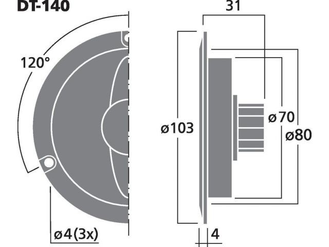 MONACOR DT-140 – Kopułkowy głośnik wysokotonowy HiFi, 80WMAX, 40WRMS, 4Ω