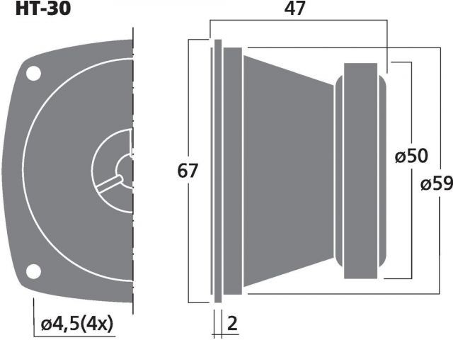 MONACOR HT-30 – Miniaturowy głośnik tubowy wysokotonowy PA, 100WMAX, 50WRMS, 8Ω