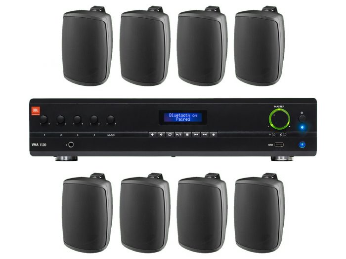 8x MONACOR WALL-05T + JBL VMA 1120 – nagłośnienie naścienne do 150m2