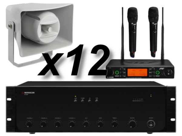 Monacor IT-100TW x12 + PA-948 + RU-8012DB – Nagłośnienie Stadionu/Orlika
