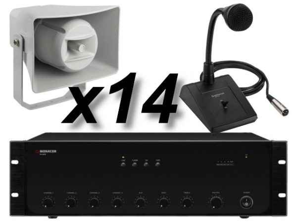 Monacor IT-100TW x14 + PA-948 + PDM 302 – Nagłośnienie Stadionu/Orlika