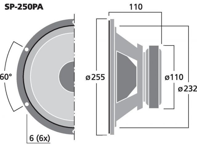MONACOR SP-250PA – Głośnik nisko-średniotonowy PA dużej mocy, 250WMAX, 125WRMS, 8Ω