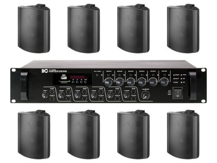 8x MONACOR EUL-60 + ITC TI-1206S – nagłośnienie naścienne do 150m2
