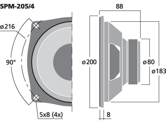 MONACOR SPM-205/4 – Głośnik nisko-średniotonowy HiFi, 70WRMS, 4Ω