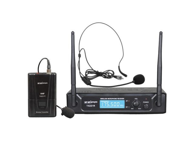- W skład zestawu wchodzą: 1 nadajnik kieszonkowy z mikrofonem nagłownym oraz krawatowym, 1 odbiornik oraz zasilacz