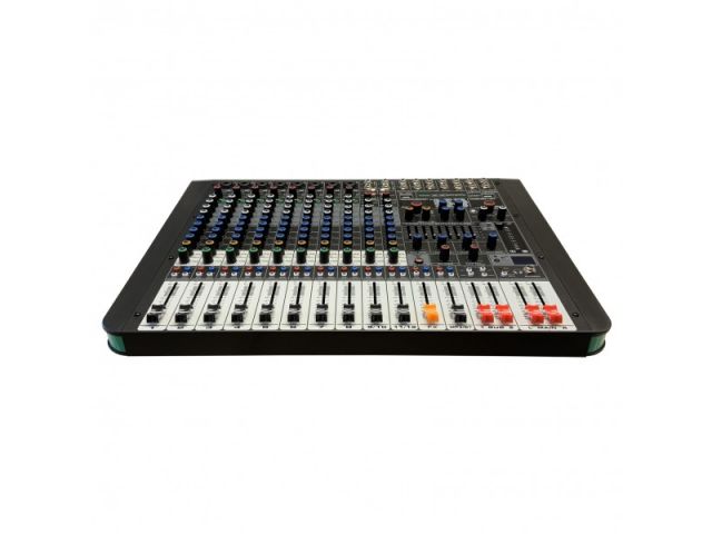 12-kanałowy mikser audio z wbudowanym urządzeniem efektowym DSP, odtwarzaczem/rejestratorem MP3 (USB) oraz interfejsem Bluetooth.