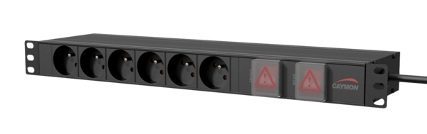 Listwa zasilająca 19" – gniazda typu francuskiego: 6 na przodzie + 9 na tyle, dwa włączniki, wersja czarna, dwa włączniki, wersja czarna