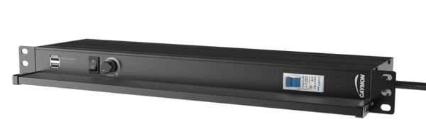 Listwa zasilająca 19" – 9 gniazd typu francuskiego, lampa LED/USB/bezpiecznik, wersja czarna