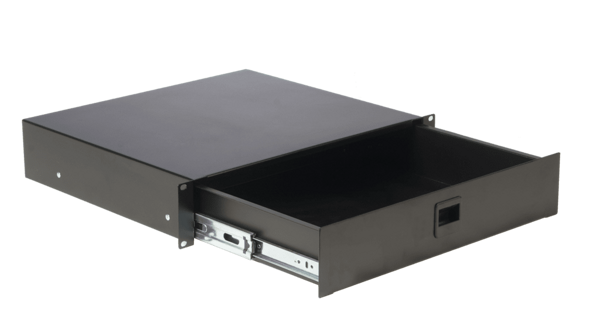 Szuflada z zamkiem do szaf rack 19" 2U, wersja czarna